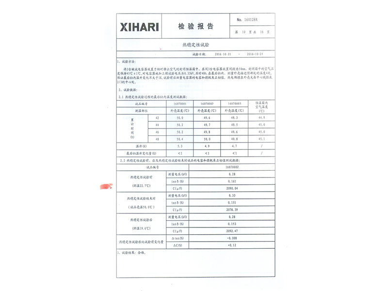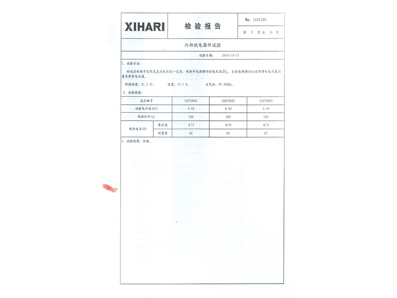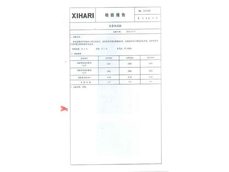 報(bào)告 礦熱爐專用干式自愈式電容器型式試驗(yàn)報(bào)告