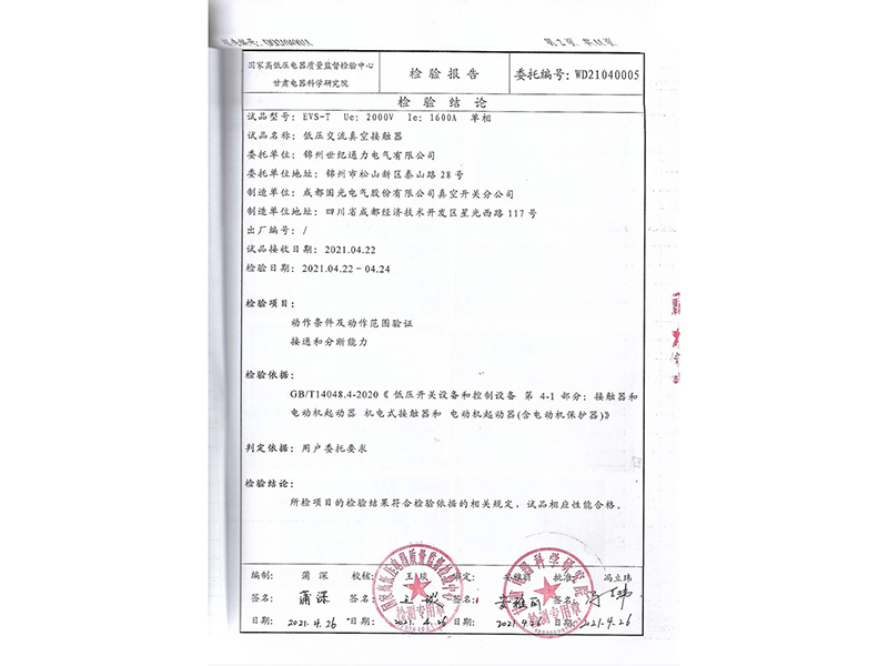 報(bào)告礦熱爐低壓無(wú)功補(bǔ)償專用真空接觸器型式試驗(yàn)報(bào)告